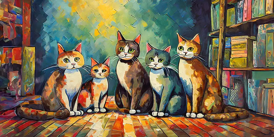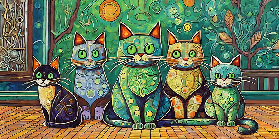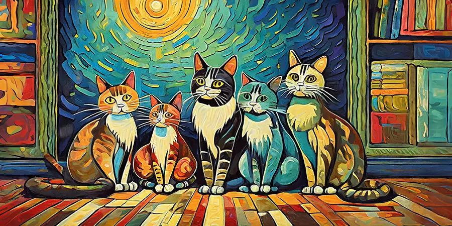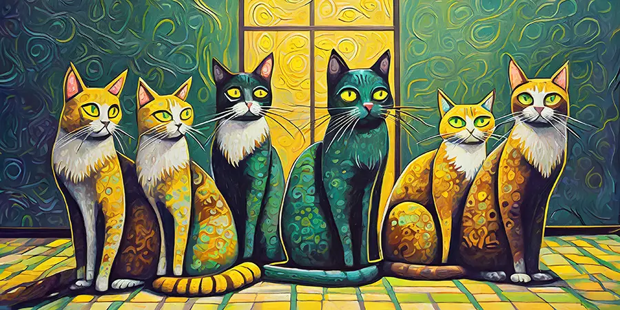 Nicht auf den Hund, sondern auf die Katze gekommen bin ich dank künstlicher Intelligenz (Adobe Firefly). Ein Teil meines Prompts war, dass die Bilder im Stile von van Gogh, Monet und Picasso sein sollten. Es hat einen Riesenspaß gemacht, und das sind die Ergebnisse: