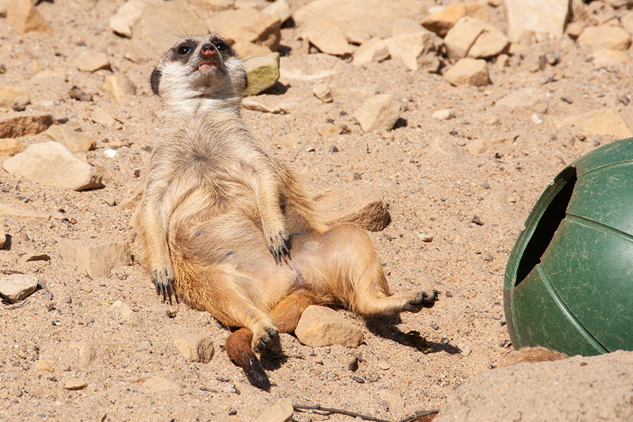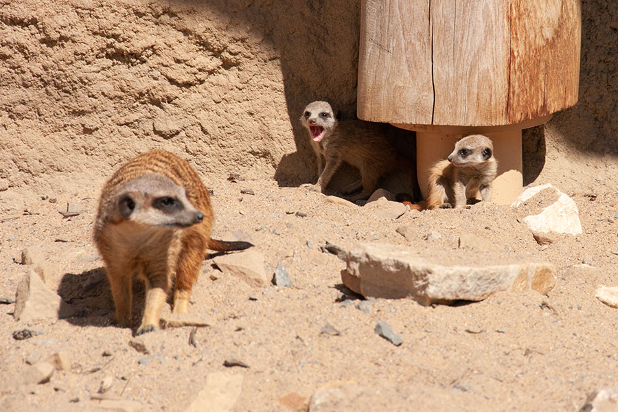 Bei den Erdmännchen. Ihnen habe ich vor ein paar Tagen im Krefelder Zoo einen Besuch abgestattet. Die Woche davor war ich auch dort und war total entzückt von den knuffigen Erdmännchenbabys, hatte aber nur mein Handy dabei. Also bin ich nochmal hin – mit negativem Corona-Schnelltest (mehr dazu am Schluss), Maske und meiner Kamera.